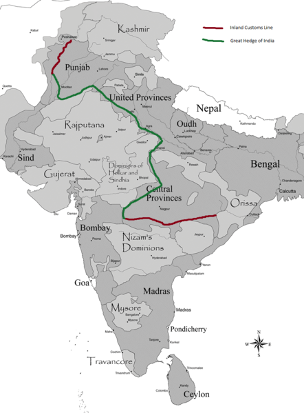 வங்கக் கடலில், கங்கை, பிரம்மபுத்ரா நதிகளின் நன்னீர் கலப்பதால், வங்கத்தில் உப்பு மிக குறைவாக கிடைக்கிறது. குஜராத்தில் தான் பெரிய உப்பளங்கள் உள்ளன. (இன்றும், இந்தியாவின் மொத்த உப்பு உற்பத்தியில் 70% குஜராத்திலிருந்துதான்). மேற்கிலிருந்து உப்பு, வட இந்தியாவிற்கும், வங்க எல்லைக்கும் வரும்பொழுது, சுங்கச் சாவடிகளில் வரி வசூல் செய்யப்படுகிறது. உப்பின் மீது விதிக்கப்படும் உள்நாட்டு வரிதான், கம்பெனியின் வருவாயில் முக்கிய பங்கு. (டாஸ்மாக் வருவாயைப்போல்). ஆனால், லஞ்சம் தலைவிரித்தாடுகிறது. உப்பு, பல்வேறு வகையில் கடத்தப்படுகிறது. எப்படி தடுக்கலாம் என்று எண்ணும்போதுதான், வேலி கட்டலாம் என்ற யோசனை தோன்றுகிறது. அப்போது, கம்பெனி, மேற்கில் மேலும் விரிவடைந்துவிட்டது.