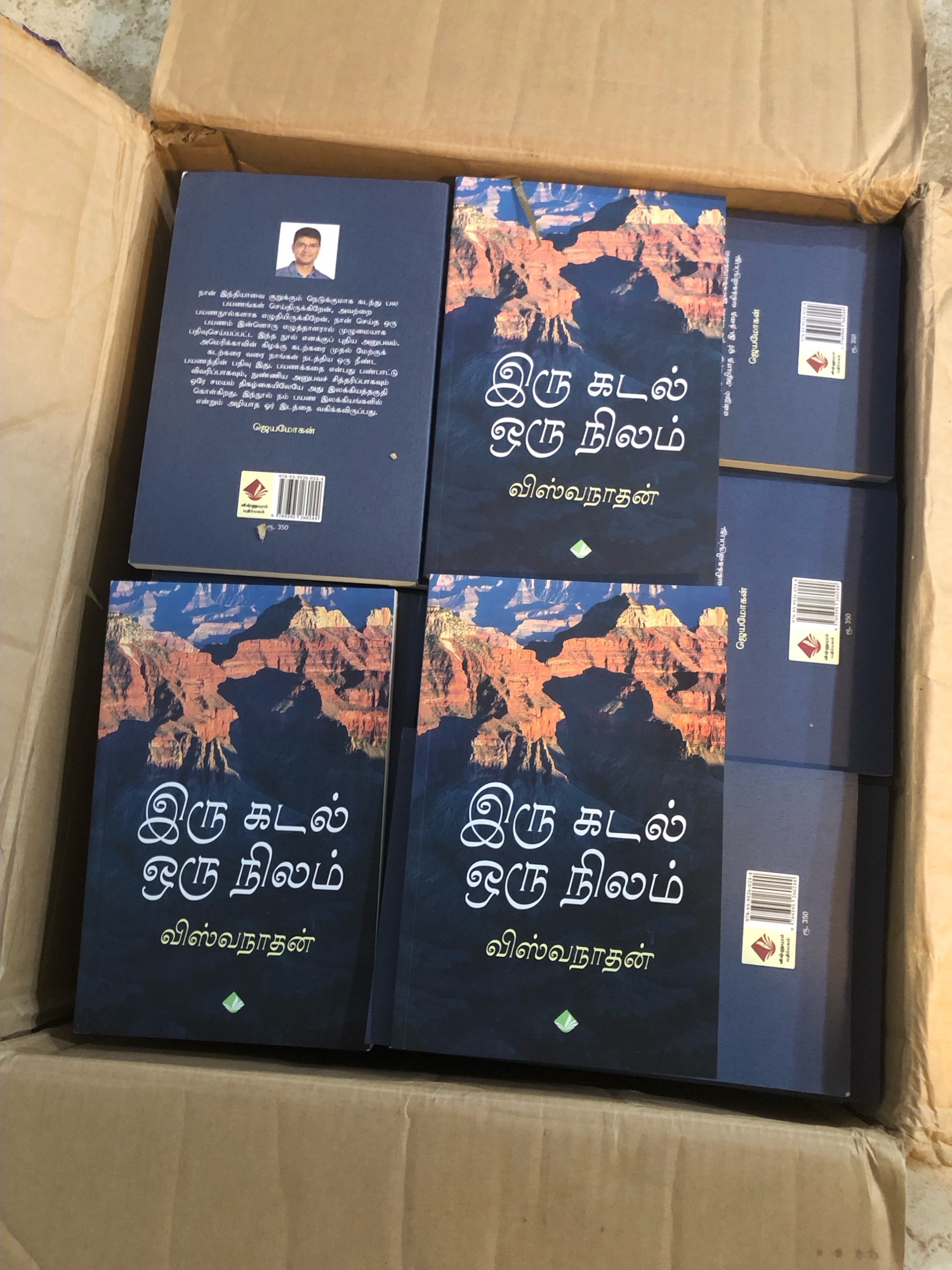 “Iru-Kadal-Oru-Nilam” – My first book, a travelogue about our cross-country trip with writer Jeyamohan, was released recently. Book release photos from New Jersey.